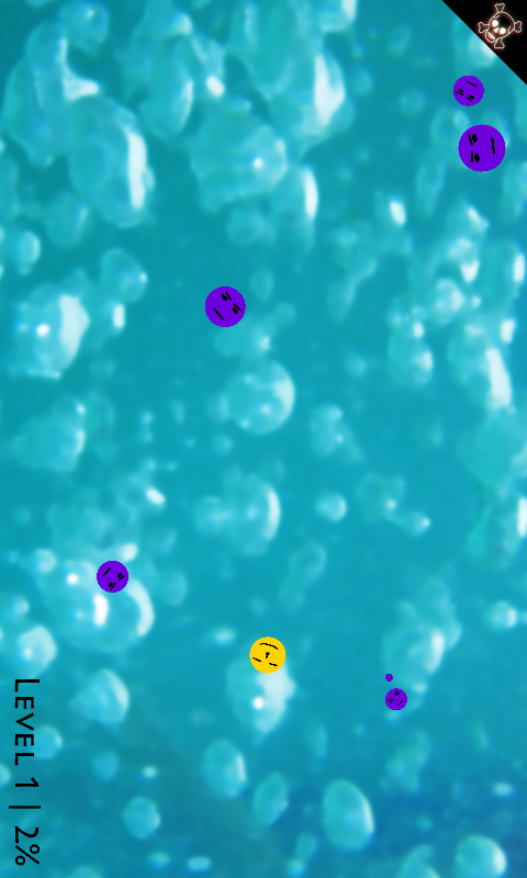You live in a world of hungry smileys, and you're looking for a snack. There are smaller smileys you can eat to grow, but be aware: Bigger enemies will give you damage, causing you to shrink and eventually vanish!