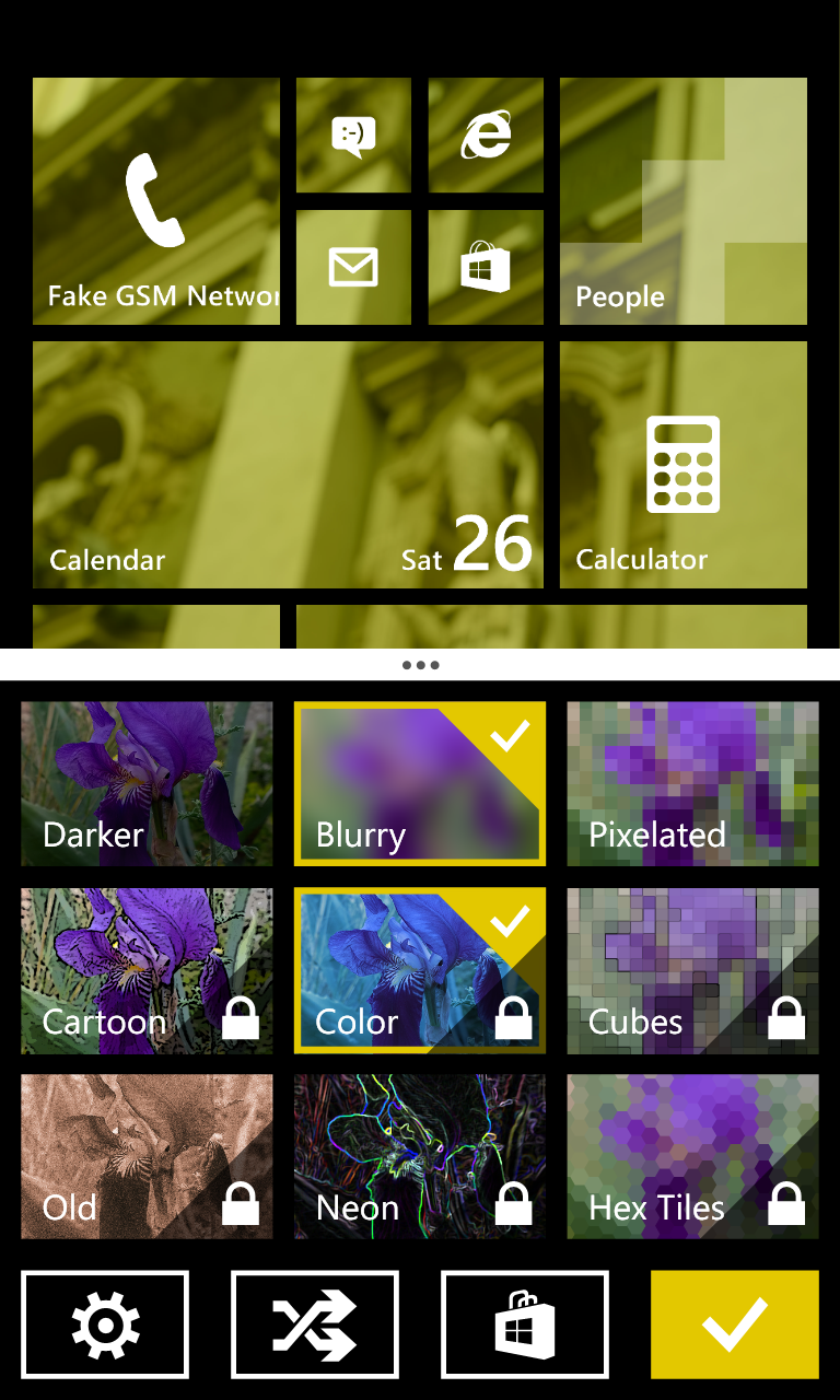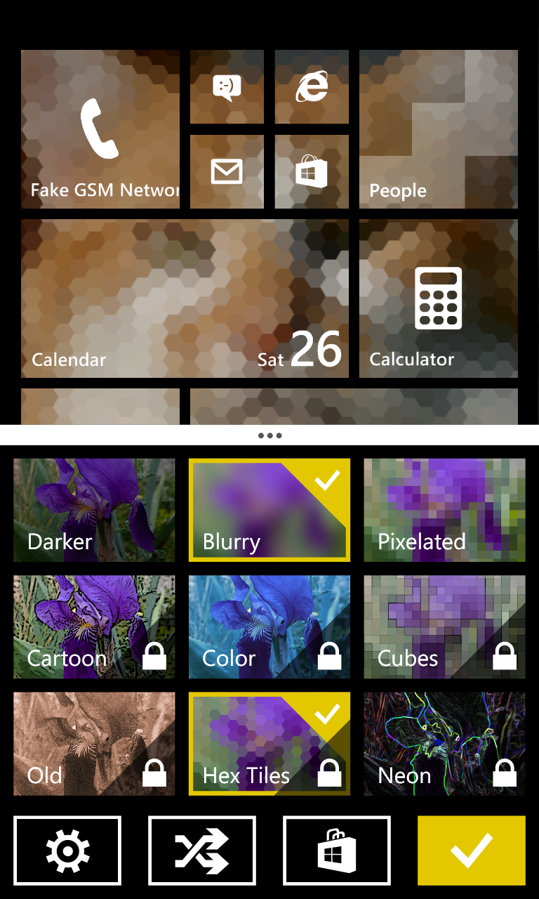 Tile Background delivers several filters to tackle those problems. Within seconds, your favorite holiday photo becomes a decent and stylish background image for your start sceen.